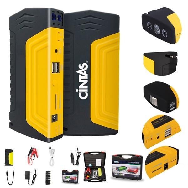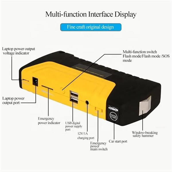All in one Emergency vehicle tool 12V Car Jump Starter peak current 600A suitable for 5.0L gasoline and 3.0L diesel engine. Jump Start 12V gasoline, motorcycles, snowmobile. SUVs, Pickups Yacht etc,. It can be used to charge smartphones,Laptops, tablets, and other electronic devices. It is also equipped with a super bright LED, which is used as an emergency flashlight.Built with safety hammer and emergency blade for outdoor emergency use. It is great for keeping in your car, camping, outdoor events, in the warehouse or anywhere you may need a quick start or extra power! Add your logo/brand on the item,what a fantastic way to spread the word about your brand.